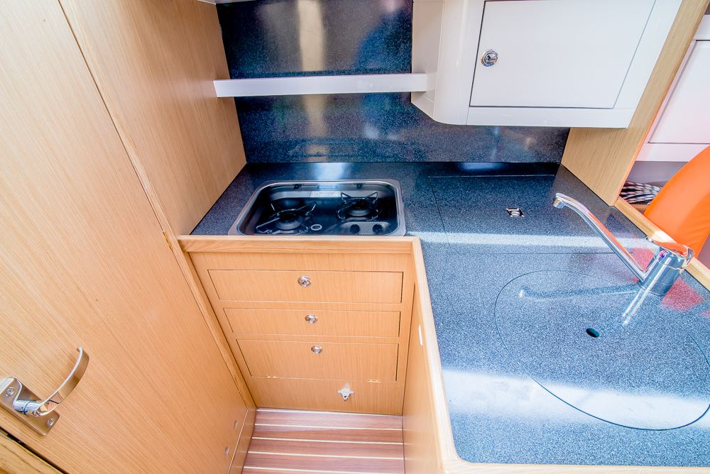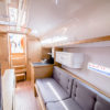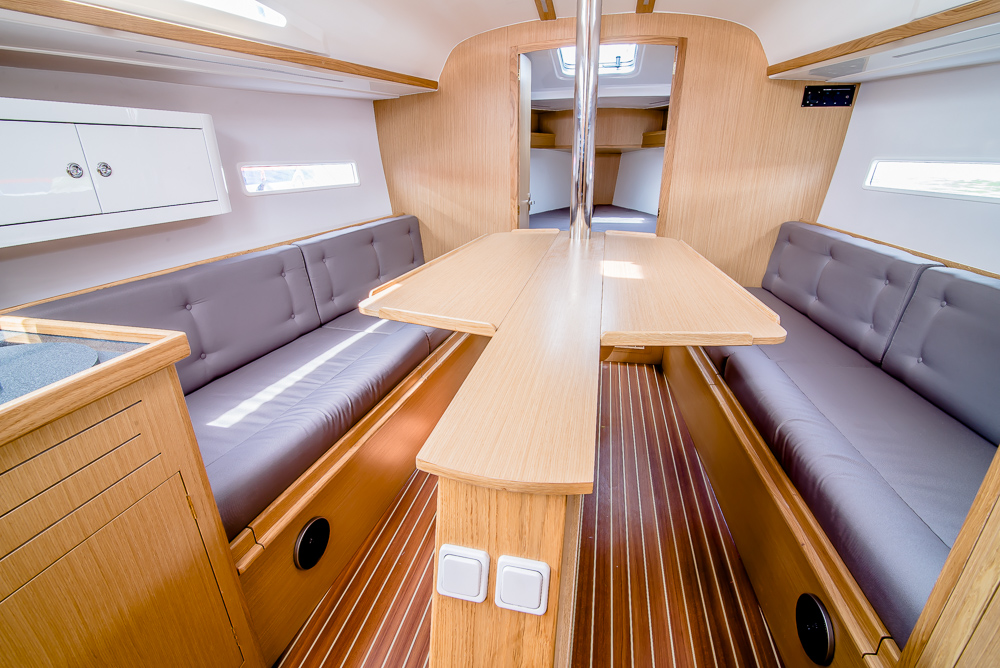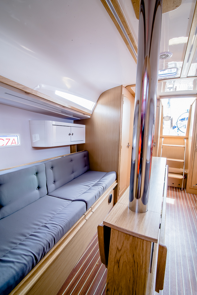 A fix cockpit asztallal szerelt tágas és ergonomikus munkaterület, illetve a szeparált kormányosi munkatér a hidraulikusan vezérelt, két 800 mm-es, valódi bőrborítású kormánykerékkel, páratlanul kényelmes vitorlázási feltételeket, valamint egyszerű kezelhetőséget kínál a kapitány és a legénység számára. Egy kiválóan manőverezhető túravitorláshoz méltóan, az alapfelszereltség részét képező önváltós fokvitorlának, a kormányállásba vezetett kezelőköteleknek, és Raymarine alapműszereknek köszönhetően, akár egykezes menetben is hódolhatunk a vitorlázás élményének.