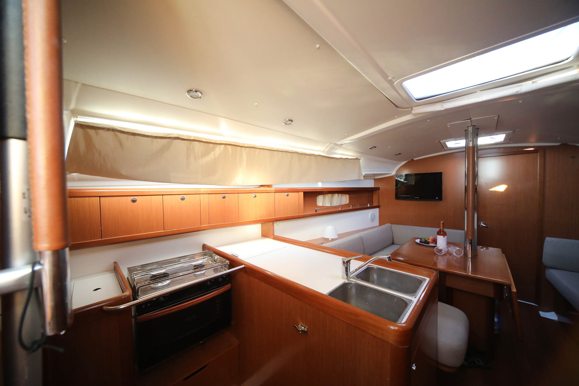 Három tágas kétszemélyes kabinnal, elegáns szalonnal és teak-borítású cockpittal rendelkező, szövet kárpitozású, rengeteg extrával ellátott, kifogástalan állapotú francia vitorlás yacht. Tavi tőkesúllyal szerelt, így merülése csupán 1,69 méter, amihez 16 méteres árbóc magasság párosul. A kényelmes kikötésben orrsugárkormány segíti a kapitányt, aki a klimatizált kajütben, vagy a decken, napozópárnán pihenheti ki a nap fáradalmait. A hajóhoz bérelhető új genakker és reacher, ami versenyzésre is alkalmassá teszi ezt az exkluzív túrahajót.
